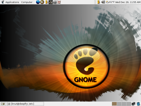 I love KDE. Most of my first year using linux was a combination of KDE or Fluxbox. During this past month I received my 10 copies of Ubuntu and I decided to give it a try. At first I was shocked to discover that it only came with GNOME. "GNOME is a slow piece of shit" I reminded myself , and its true, on an old machine there is quite a difference in speed between QT and GTK applications (KDE uses QT, GNOME uses GTK). Nevertheless I decided to use it and know I sort of like it. Of course KDE still kicks it ass with programs like K3B.